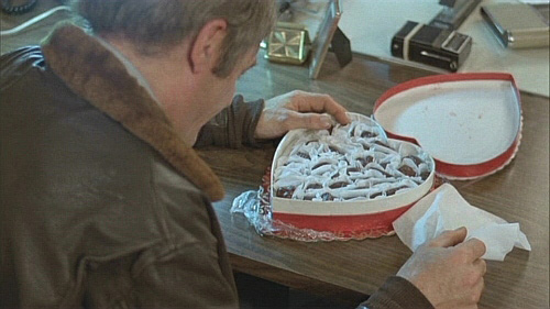 than candy, the box contains a human heart. The Mayor leans back in