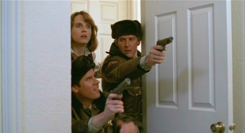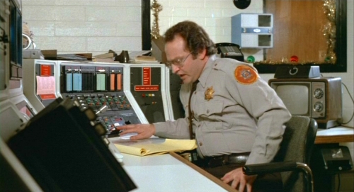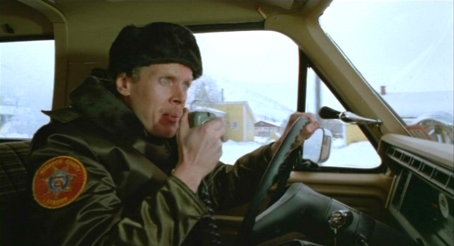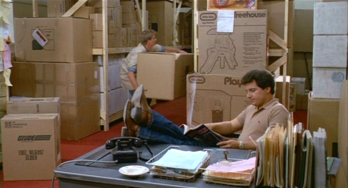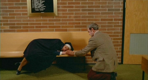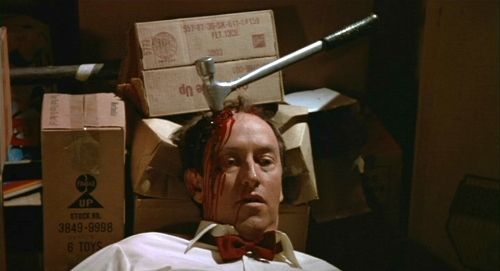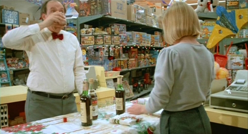 Sims enthusiastically embraces closing time. Mr. Sims: “Seven o’clock. It’s over! Time to get shitfaced!” Shadow’s comment: My sentiments exactly when this film finally ended. |